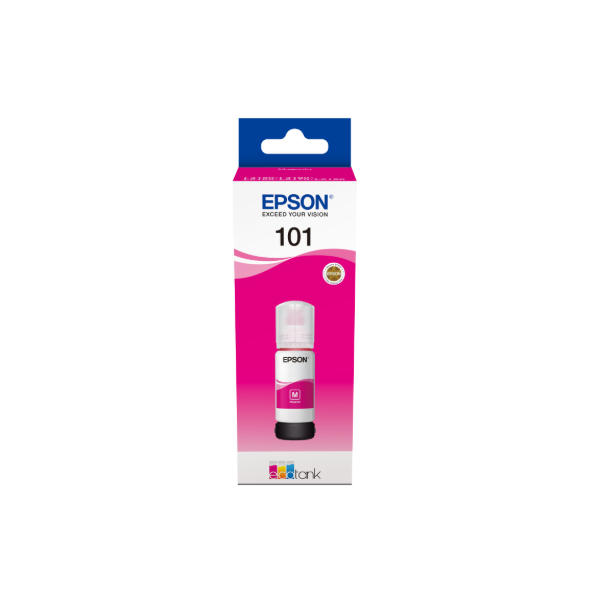 The Epson 101 Magenta ink bottle delivers precise red and pink color rendering for sophisticated EcoTank Epson Printers. The Epson 101 Magenta is Ksh.1300 at Techovant Solutions